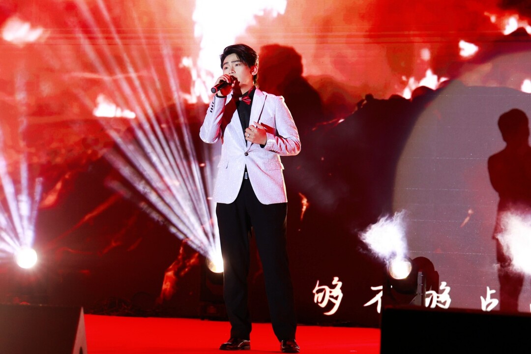 决赛现场,梁得海同学以沉稳自信的台风亮相。随着《绽放》的旋律响起,他清澈而富有穿透力的嗓音瞬间抓住了观众的耳朵。歌声中,既有少年独有的蓬勃朝气,又饱含着对党、对新时代的深沉礼赞,将歌曲中“追寻理想、勇敢绽放”的精神内核演绎得淋漓尽致。其专业的音乐处理、稳定的现场发挥和饱满的情感投入,赢得了评委们的高度认可与现场观众的阵阵喝彩。