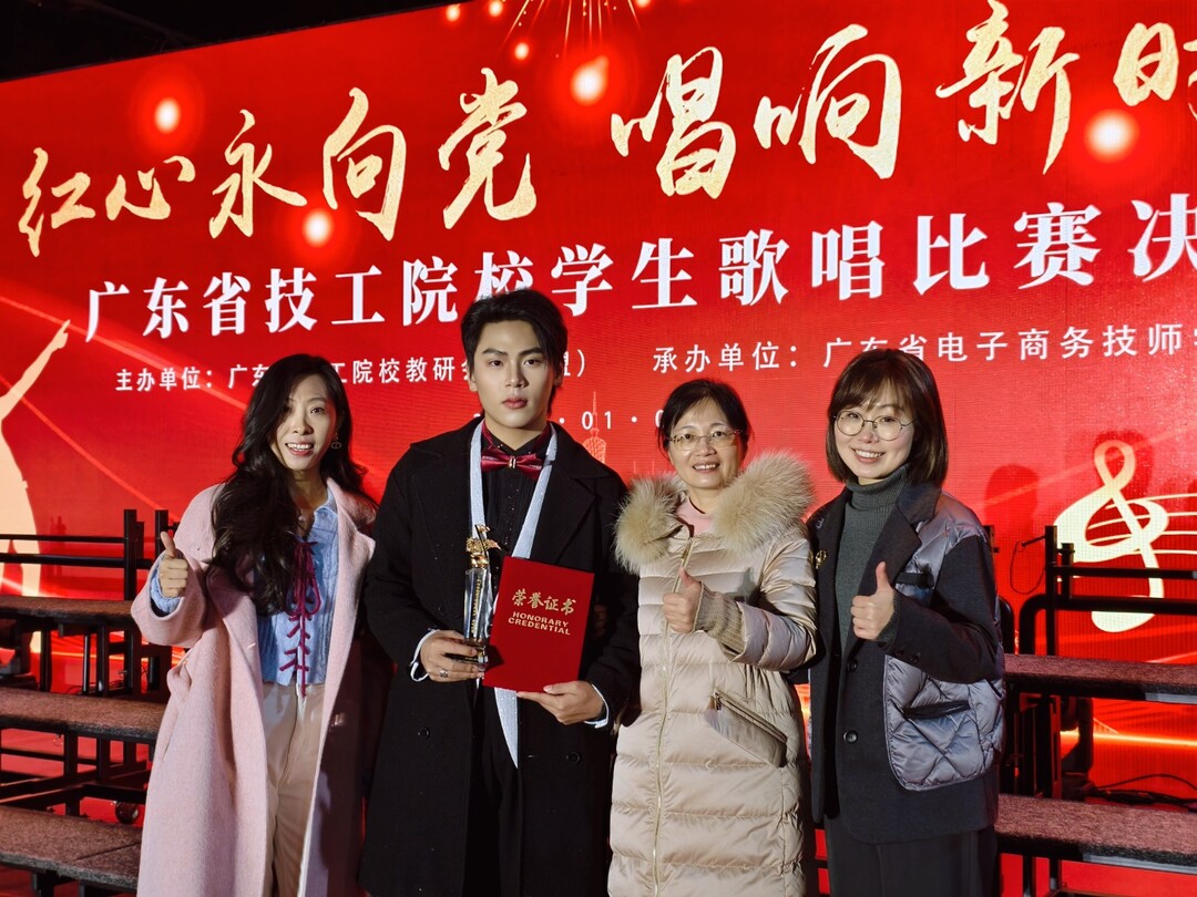 成功的背后,是汗水与智慧的凝结。这份沉甸甸的荣誉,既源于梁得海同学日复一日的刻苦练习,也离不开叶淑媛、刘博两位指导老师的倾心付出。备赛期间,师生团队反复推敲每一个音符、打磨每一处细节,从发声技巧到情感层次,从舞台表现到形象塑造,精益求精,最终让这个作品在省级赛场上璀璨“绽放”。