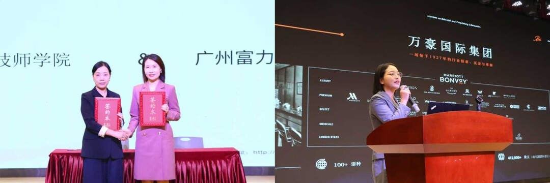 11月11日,高端酒店品牌——广州富力丽思卡尔顿酒店人力资源总监李俊、人事经理冉光仙一行莅临我院,在行之礼堂开展了校园宣讲暨校企合作框架协议签约活动。学院伊晓浏副书记、校企办李栋主任、港航系曾志海主任、张小利副主任及相关班级师生参加了些次宣讲,在酒店经理对酒店品牌、服务理念及项目教学内容介绍后,由伊晓浏副书记代表学院与酒店签定了校企合作协议,为港航系的发展写下了浓墨重彩的一笔,而酒店的“以绅士淑女的态度,为绅士淑女服务”的服务理念也深入人心,让同学们对参与此次活动充满了期待,最终,来自于酒店管理与邮轮乘务专业的36名学生脱颖而出,成功获得此次实践学习机会。
