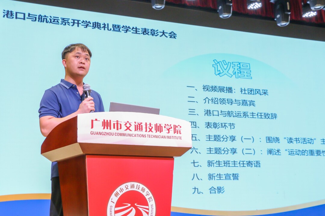 曾志海主任详细阐述了系部优势与规划,为全系师生勾勒出专业发展的蓝图,并寄予了殷切期望:他希望全体师生能放下过往包袱,无畏未来挑战,纯粹专注地把握当下;以读书和运动充实自我,脚踏实地,迈向技能成才、技能报国的辉煌之路!致辞对港航系发展的清晰梳理和对同学们成长的细致指引赢得了在场师生的热烈掌声,为港航系学子明确了专业学习方向与人生奋斗目标。