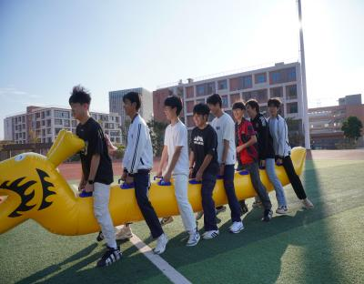 由航空服务产业系精心策划的“文脉匠心・智趣同行” 趣味拓展活动,凭借极强的参与性和互动性,吸引了全校各系部8支代表队、超100名学生踊跃参与。活动现场设置了“摸石过河”、“多人多向拔河”、“一圈到底”、“陆地龙舟”、“电臀达人”共五个挑战项目。这些项目兼具趣味性与协作性,不仅考验个人的灵活与毅力,更强调团队的默契与策略。活动现场欢声笑语不断,加油呐喊此起彼伏,各队队员在比赛中通力合作、奋勇争先,充分体现了“友谊第一,比赛第二”的体育精神,有效促进了跨系部学生的交流与友谊,提升了集体荣誉感和团队凝聚力。