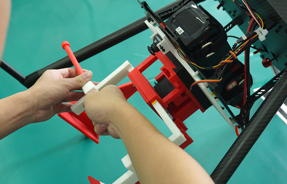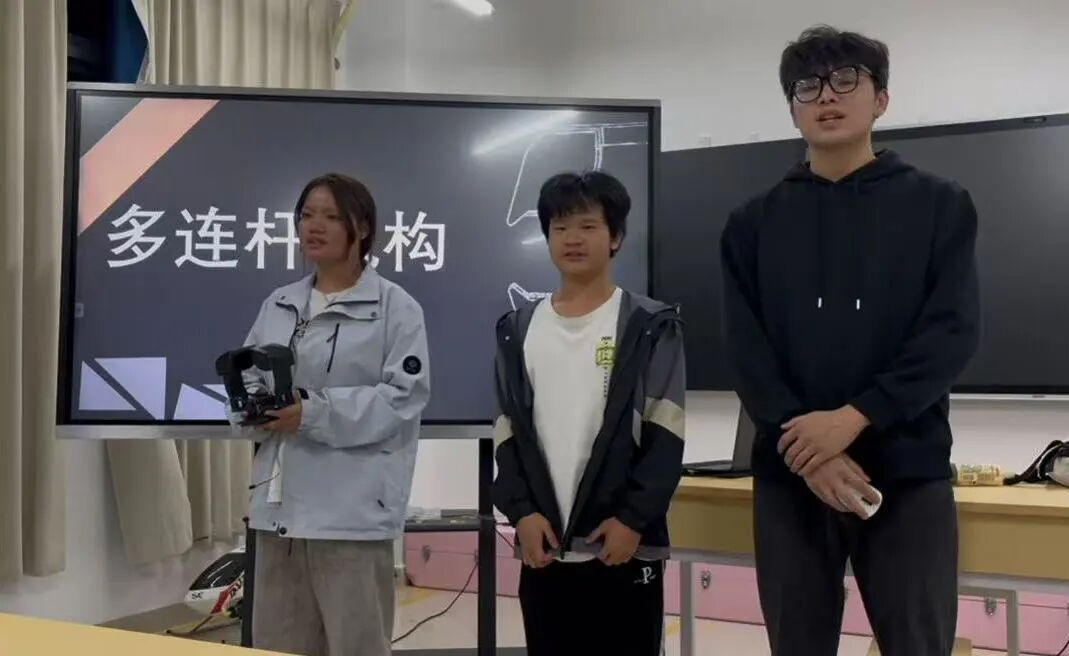 学院3支参赛团队在黄梓田、洪玉祥、谢恩伟教练指导下,分别完成三款不同机械结构的负载机械爪设计:黄伟杰、黄铭锋、陈奕如组成的红橙黄队完成《一秒快拆舵驱双开机械爪》,龚武乐、谢家铭、吴晶晶组成的十八突维队完成《齿轮驱动的多连杆机械爪》,张宇、李冠业、苏炜杰等组成的蟹黄拌面队完成《多级曲柄连杆机构机械爪》。三支团队均圆满完成赛前答辩与飞行竞技任务,其中十八突维队3分钟完成无人机与负载机械爪装配调试,且飞行投掷精准命中满分靶心,创下赛场最速传说。