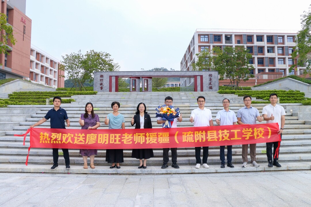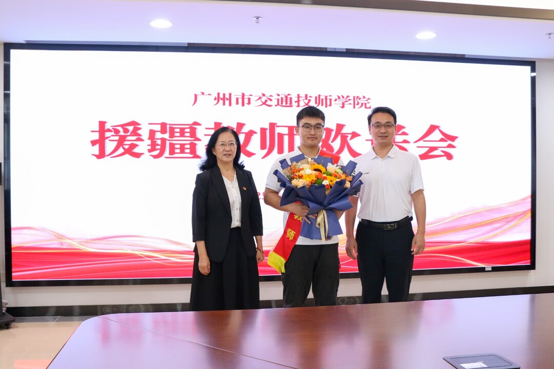 2025年10月10日,广州市交通技师学院为廖明旺老师举办了援疆教师欢送仪式。学院党委书记任惠霞、专职纪委书记蒋碧涛,行政办公室、人力资源处、工会、汽车与能源产业系负责同志参加了座谈会。
