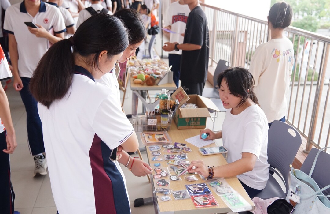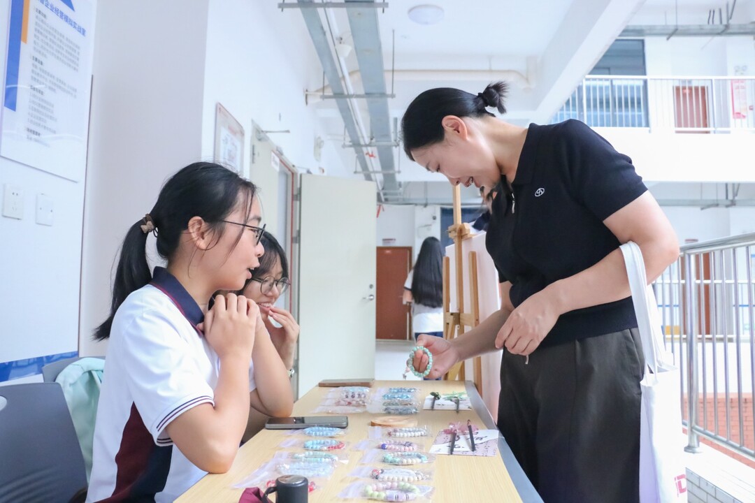 随着一声锣响,市集瞬间热闹起来,各个摊位前很快围满了前来“淘宝”的学生。这里有纯手工制作的精美饰品、独具匠心的扎染布艺、栩栩如生的黏土手办,展现了年轻一代对美与个性的追求;还有学生自主完成的3D打印模型、环保科技小制作,将课堂所学与实践相结合,令人眼前一亮。