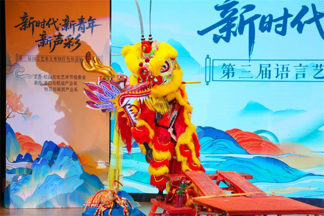 活动以学院醒狮队表演开场,点燃全场气氛。港口与航运产业系主任曾志海致辞,强调语言艺术是传承中华优秀传统文化的重要载体,红色情景剧是赓续红色血脉的有效形式,鼓励同学们在活动中感悟语言魅力,厚植家国情怀。