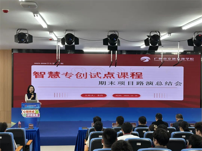 12月19日,广州市交通技师学院2025-2026学年第一学期智慧专创试点课程期末项目路演总结会在学院B4-2-209路演大厅圆满举行。学院相关领导、企业导师代表、试点课程授课教师及学生代表齐聚一堂,共同见证智慧专创课程试点教学的丰硕成果,感受青年学子的创新活力。