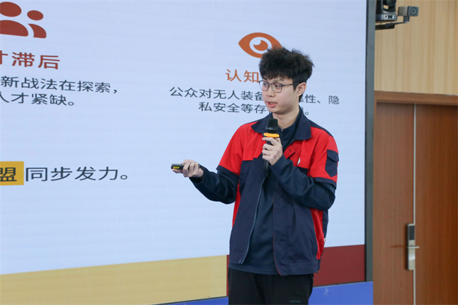 作为本学期智慧专创课程教学总结汇报的重头戏,本次路演总结会的重点和亮点是学生精心准备的项目展演。来自机电一体化、无人机应用技术、巴哈大赛、网络营销与直播、数字媒体技术等多个专业的9支学生团队依次登台,通过PPT讲解、实物展示和现场互动,生动呈现了项目的创新理念、技术优势与市场前景。参展项目涵盖多个领域,包括聚焦消防救援的“科技赋能消防救援:无人机与机器人”、专注游乐设施安全的“测轨侠-多传感过山车轨道式安全巡检机器人”、突破动力技术的“等离子推进无人机”,以及兼具创意与商业价值的“漫盒奇旅-惊喜盲盒漫物集”等。其中,“巴哈越野赛车”项目凭借精湛的机械设计与稳定的实战表现,赢得现场热烈反响,展现了学生在专创融合实践中的扎实能力。各项目的精彩演绎充分体现了学院多元化创新人才培养的成果。